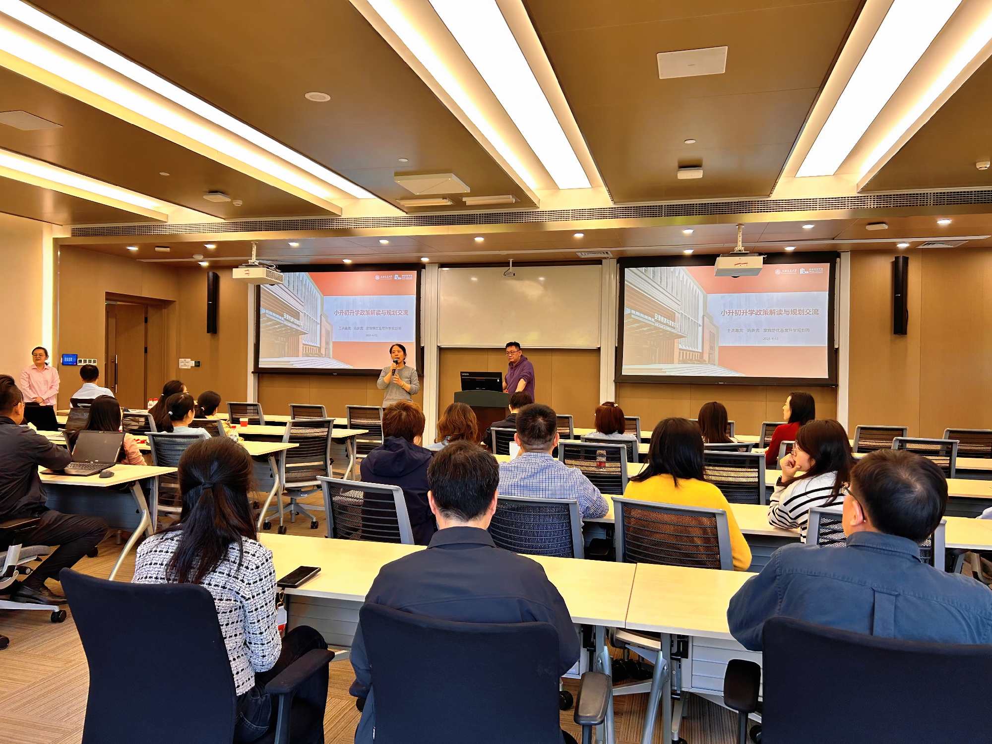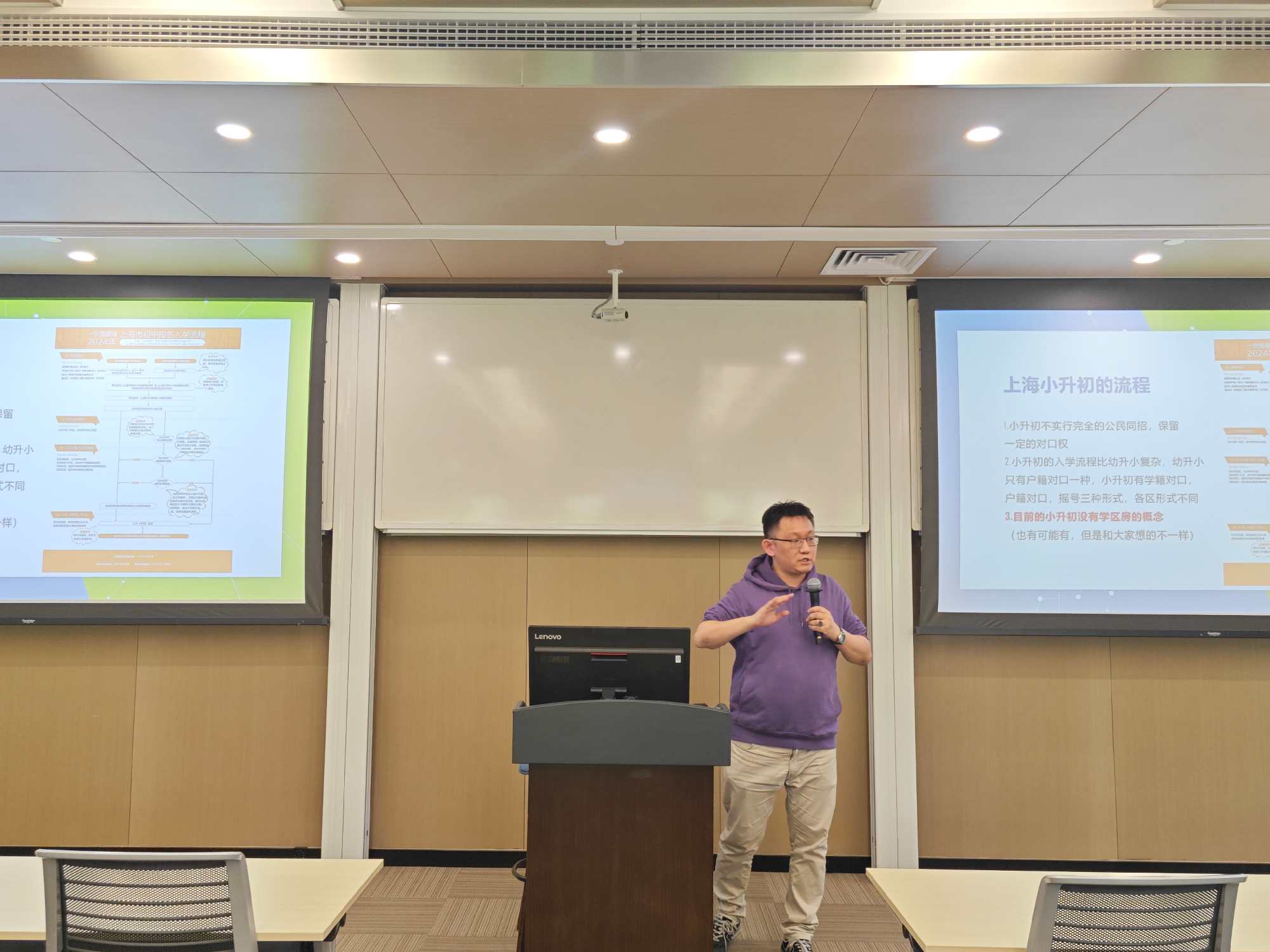 讲座现场座无虚席,近70位教工带着对孩子升学的关切早早来到现场。姚老师凭借其丰富的升学规划经验,围绕小升初家长关注的核心问题展开,为在场教工详细解读了上海各区小升初的政策要点,包括入学流程、对口逻辑、统筹安排原则等关键信息。