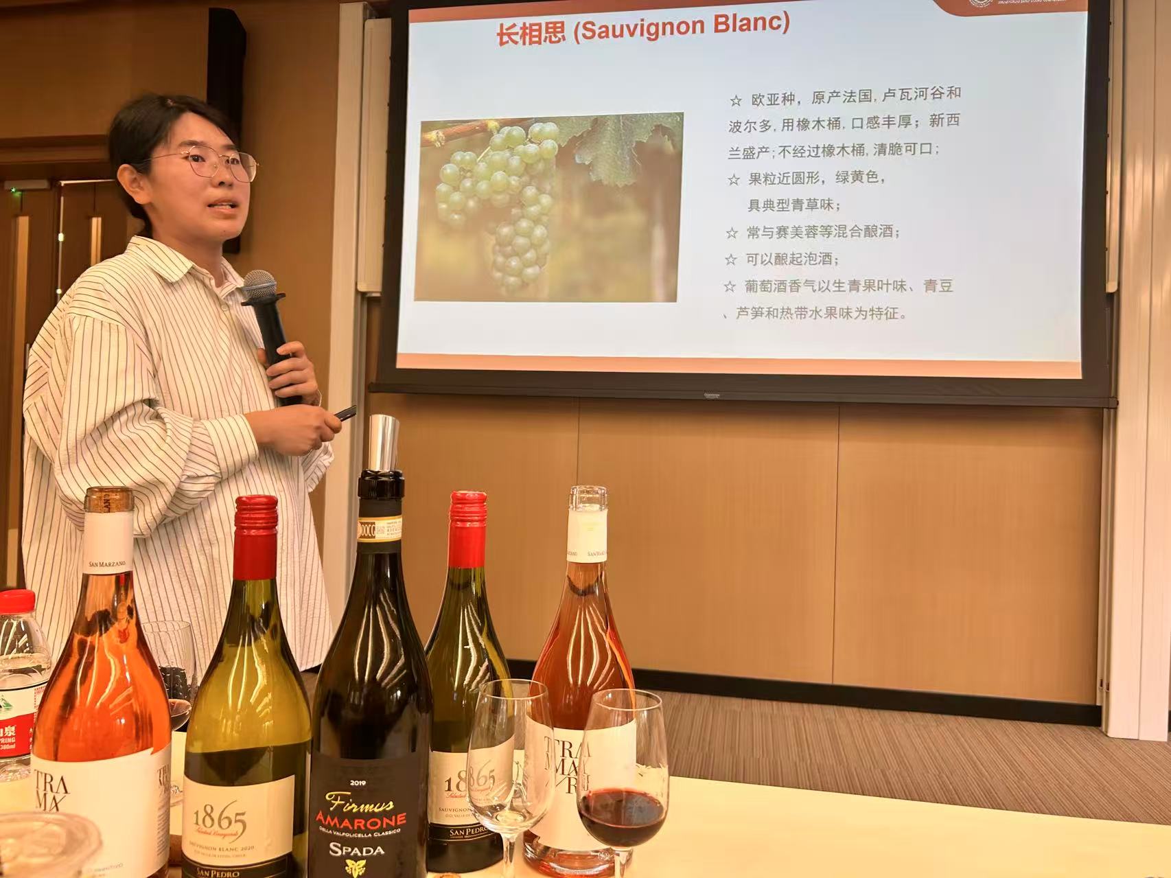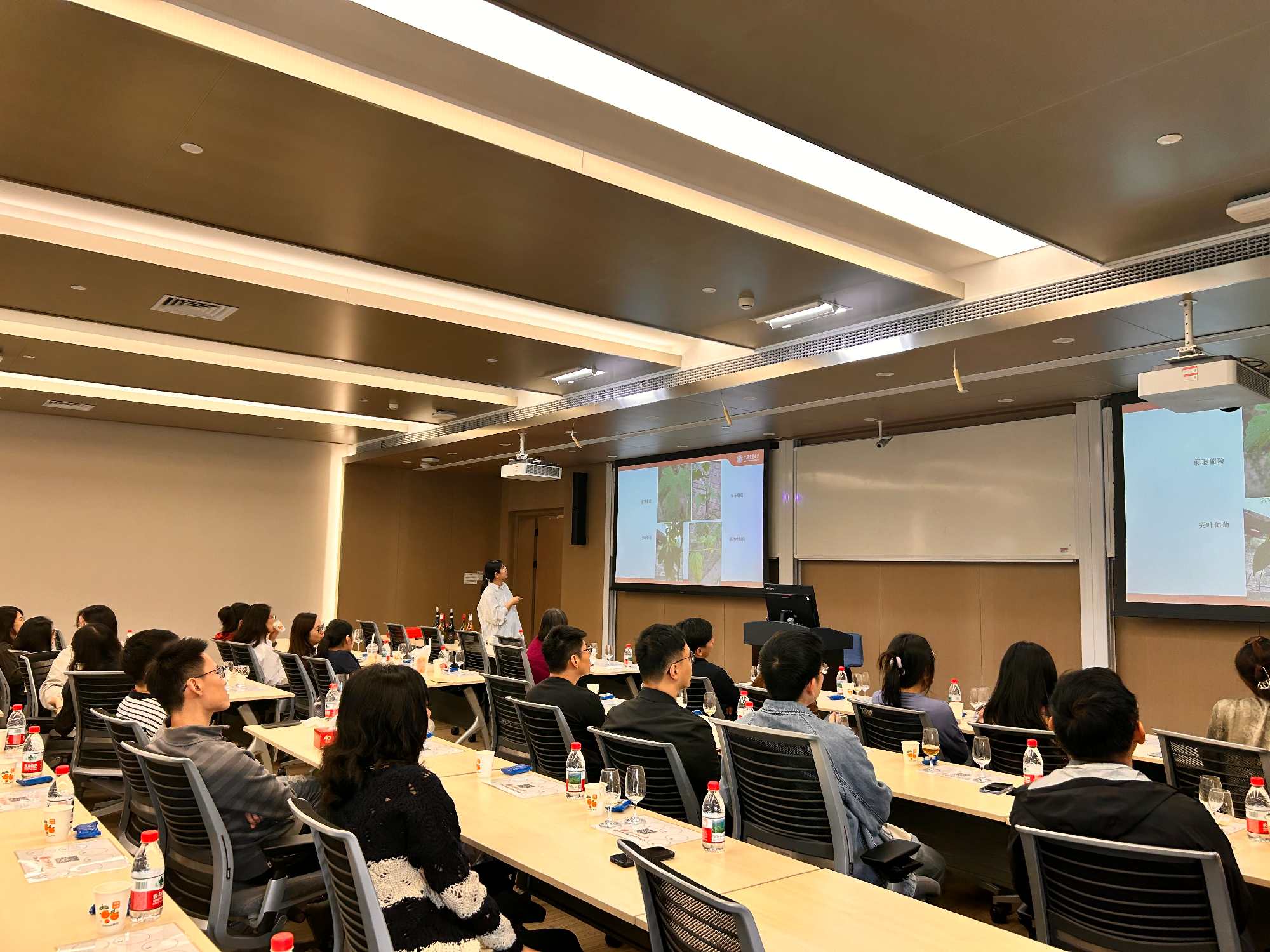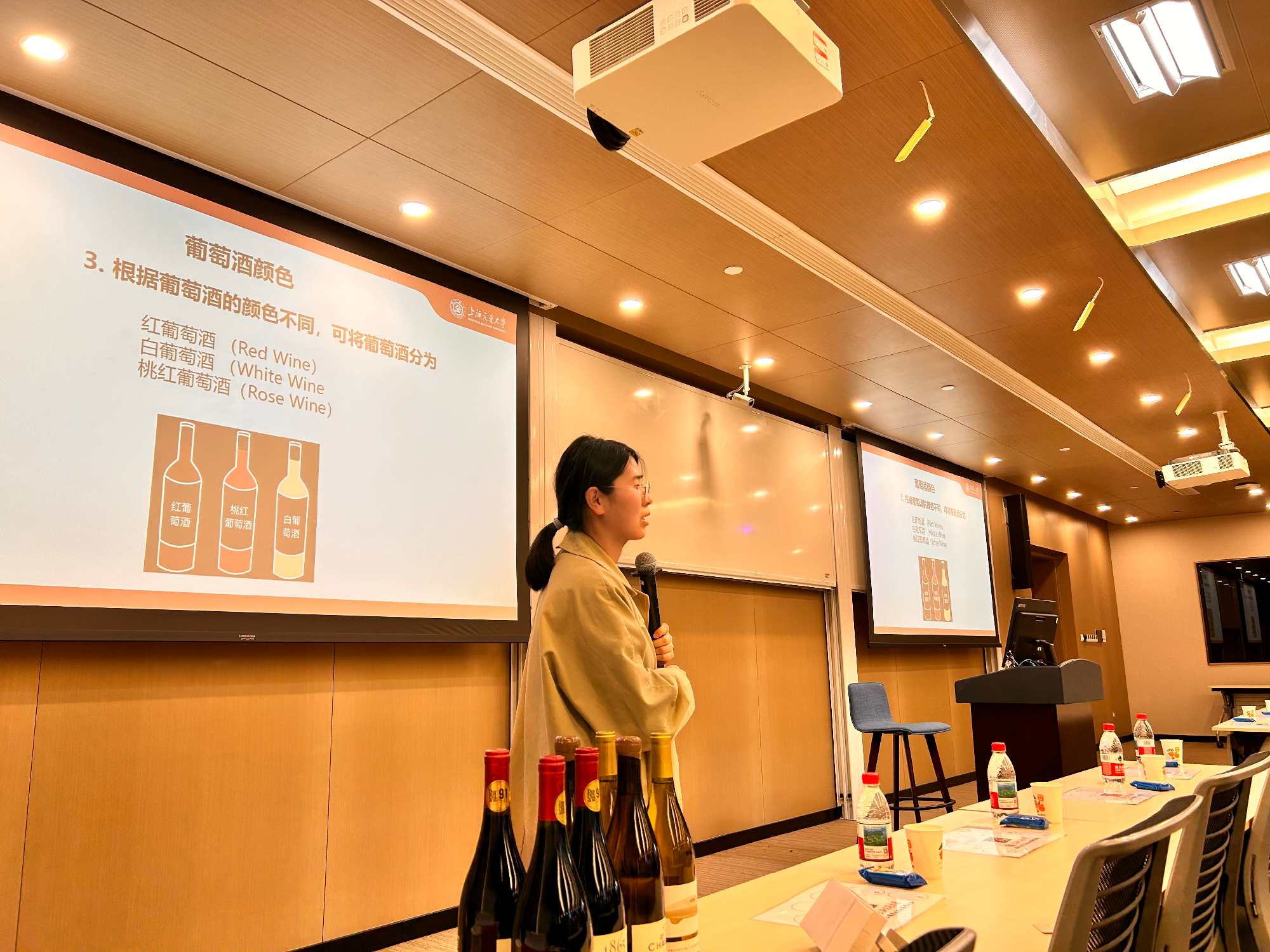 此次课程的主讲人是来自上海交通大学农业与生物学院葡萄与葡萄酒研究中心的彭亚纯老师,彭老师凭借其深厚的专业知识和丰富的行业经验,为参与课程的老师们打开了葡萄酒世界的大门。课程内容丰富多样,涵盖葡萄酒的历史文化、葡萄品种特性、酿造工艺、新旧世界葡萄酒差异,以及餐酒搭配的艺术等多个方面,构建起一套全面且系统的葡萄酒知识体系。