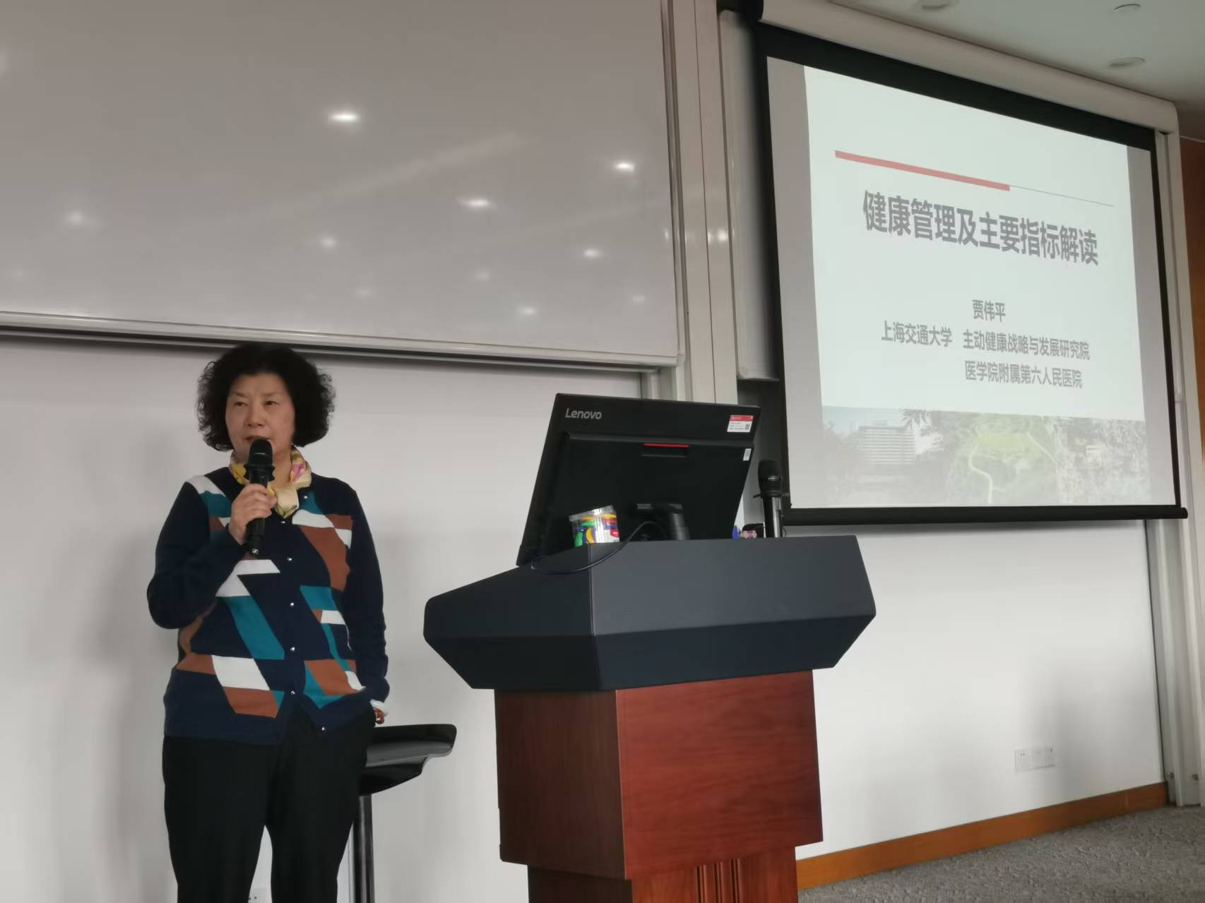 本次讲座特邀上海交通大学讲席教授、主动健康战略与发展研究院院长贾伟平教授,以及上海交通大学特聘教授、医学遗传研究所所长曾凡一教授担任主讲嘉宾。贾伟平教授以《健康管理及主要指标解读》为题,结合多年临床经验与研究成果,用通俗易懂的语言详细解读了血压、血糖、血脂等核心健康指标的正常范围、监测方法及异常应对策略,帮助教职工建立科学的健康评估体系。曾凡一教授则围绕《从大健康谈:主动健康・融合医学》展开分享,从多学科融合视角阐述主动健康的核心理念,探讨了遗传因素、生活方式与健康管理的密切关联,为教职工提供了全方位、个性化的健康养护思路。