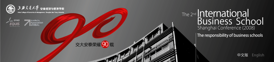At March 28-29, 2006, Antai College of Economics & management hosted ��The 1st International Business School Shanghai Conference (2006)�� in celebration of SJTU��s 110th birthday, which is the biggest of its kind ever took place in China or Asia. Under the theme ��Cross-Cultural Leadership: Integration Between East and West��, the Conference had four topics, i.e. International accreditation of business school, Chinese business schools going global, Integration between East and West, Cross-cultural leadership.