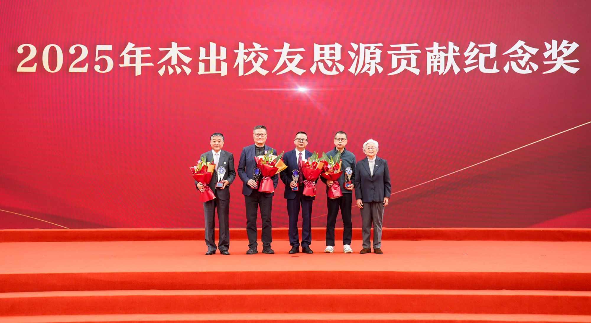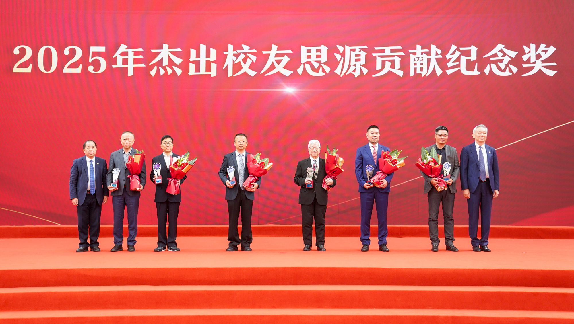 在2025年度杰出校友奖颁奖仪式上,安泰校友俞伟景、张刚、毛丞宇、邹宏宇、黄国江、季弘良以及张磊、翁吉义、黄勇集体,卓越领导者(后E)课程研修班(首期)荣获“上海交通大学杰出校友思源贡献纪念奖”称号。校友们传承着安泰精神,以智慧与担当在各自的领域为母校增辉。