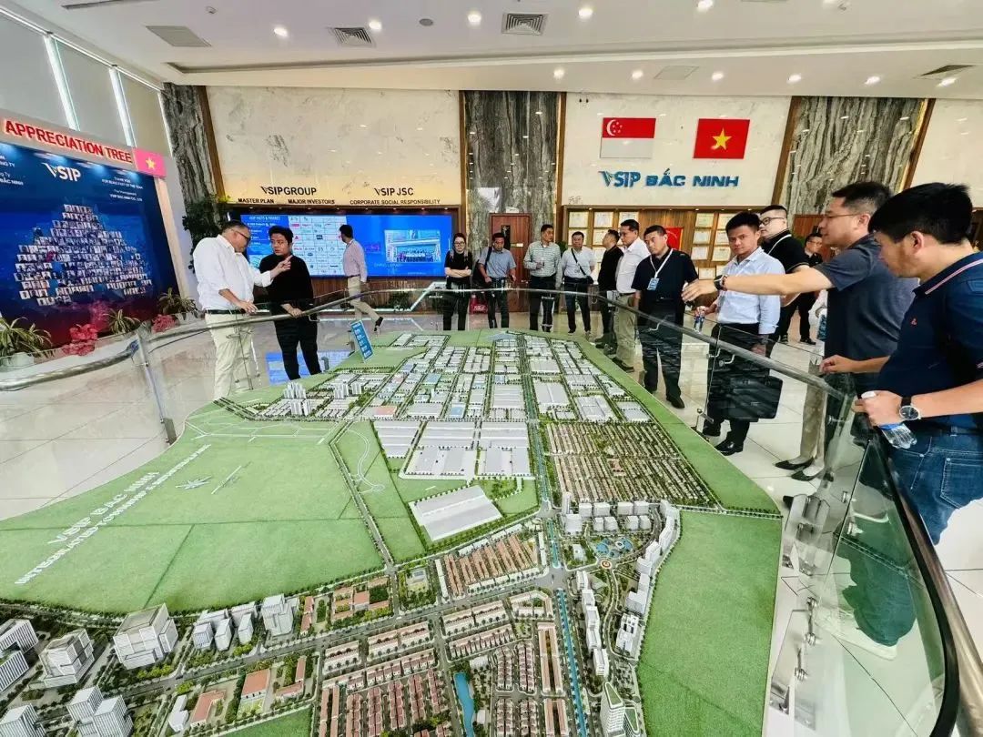 6月12日上午,校友们参观了胜科集团VSIP越南新加坡工业园北宁园区。园区负责人接待并介绍了新加坡VSIP在越南的发展布局情况,交流了园区内企业的生产运营模式、技术创新成果以及园区在配合企业税收规划、基础设施建设、产业配套等方面的优势。校友们切实感受到越南制造业在吸引外资、推动产业集聚发展等领域所取得的显著成效。