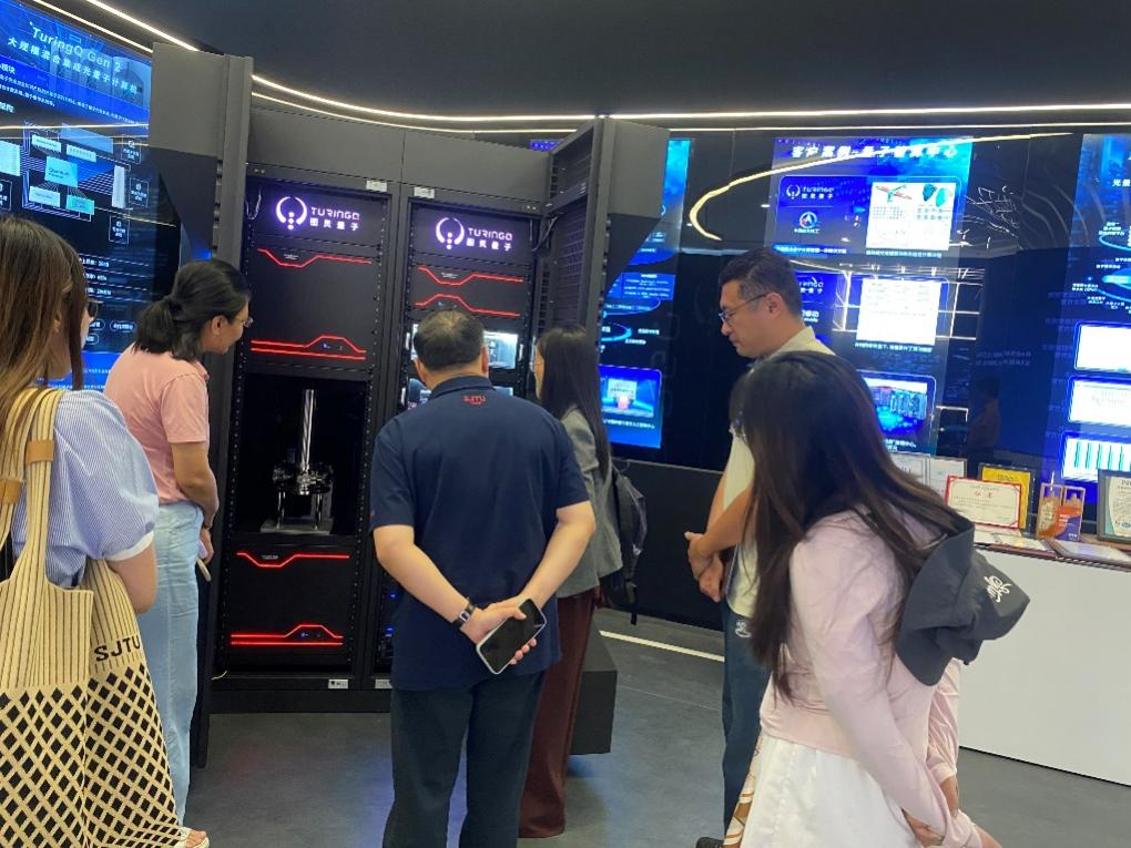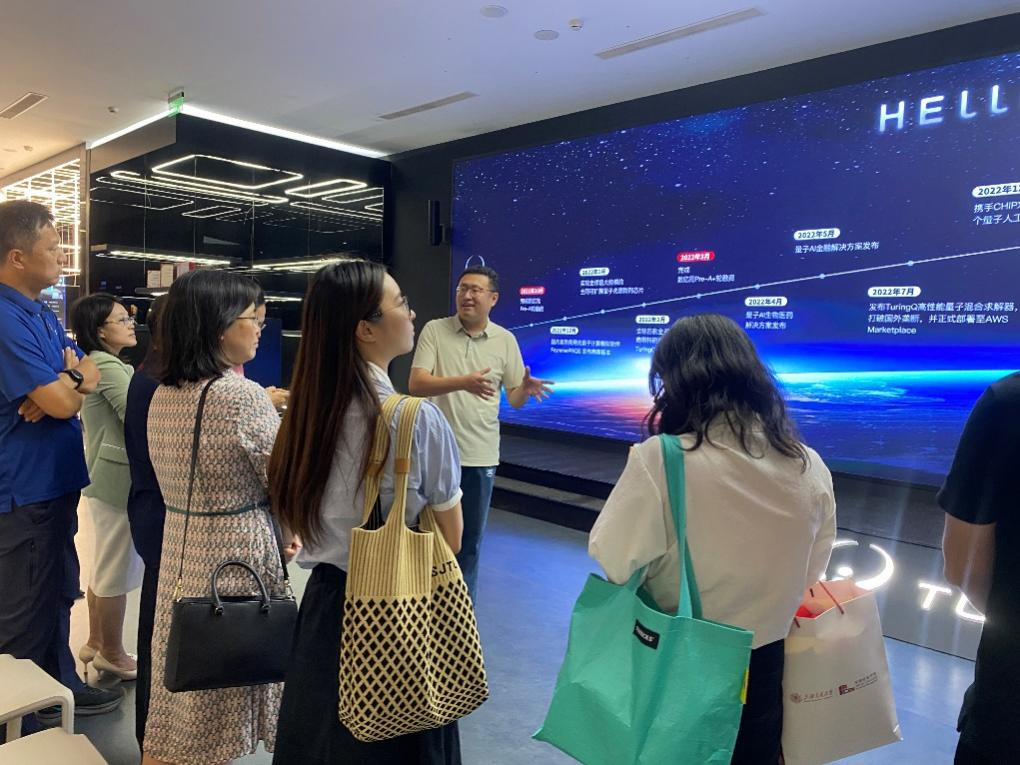 活动尾声,物理与天文学院光科学与技术党支部书记、副所长唐豪带领与会人员一同参观了国内首家光量子计算企业——图灵量子。图灵量子致力于推动“芯片-光-智-算”的跨领域协同发展,是物理与天文学院金贤敏教授带领团队深耕光量子研究二十余年的成果成功转化的典范。参观过程中,大家与图灵量子品牌总监赵竣锋进行了互动交流,亲身感受了前沿科技产业化的蓬勃活力。