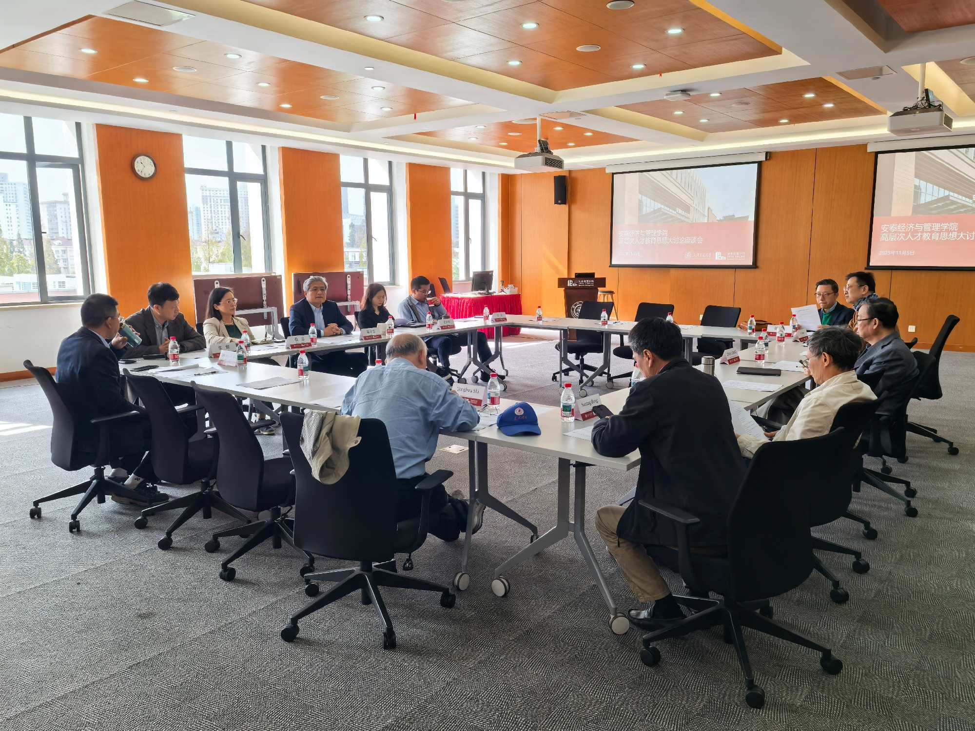为响应国家教育强国战略号召,加快推进世界一流大学建设进程,上海交通大学安泰经济与管理学院于11月5日上午在包图A509召开高层次人才教育思想大讨论座谈会。会议由院长陈方若主持,党委副书记、纪委书记殷洁作总结讲话,副院长朱喜、朱庆华、张麒及多位资深教授出席会议。会议聚焦“人才培养”与“世界一流大学建设”等核心议题,结合前期调研成果提出具有前瞻性的建议,为教育改革注入新动力。此次会议由人力资源办公室和教务办公室共同举办。