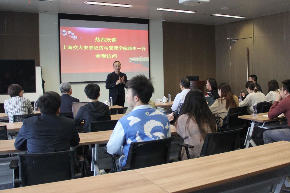 下午的交流互动由朱伟军导师主持。利得集团董事长李兴春博士首先对交大安泰师生到访表示热烈欢迎,在介绍了利得集团的发展历程和在不同金融领域的布局概况后,李总表示希望未来交大安泰经管学院与利得集团多多互动交流、共进共赢;主持利得研究院工作的集团首席经济学家、1999届安泰经管学院国际金融专业本科校友郦彬博士介绍了研究院资产配置部、金融工程部以及基金研究部的工作内容和研究框架。